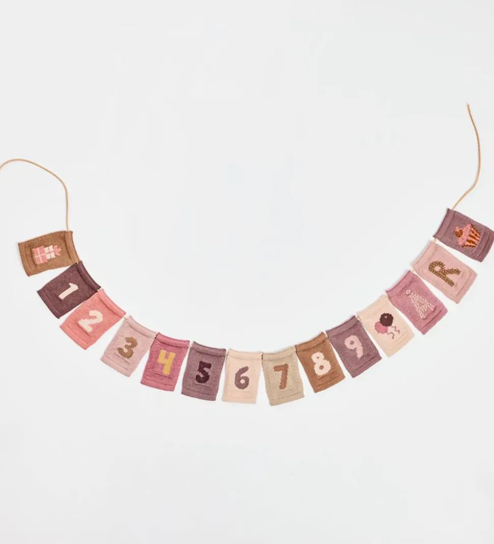 Flot Smallstuff flag i lys rosa med en strikket struktur og tallet “6” i mørk lilla. Med Smallstuff strikkede flag kan du kombinere tal, bogstaver og motiver og danne en sød flagranke.