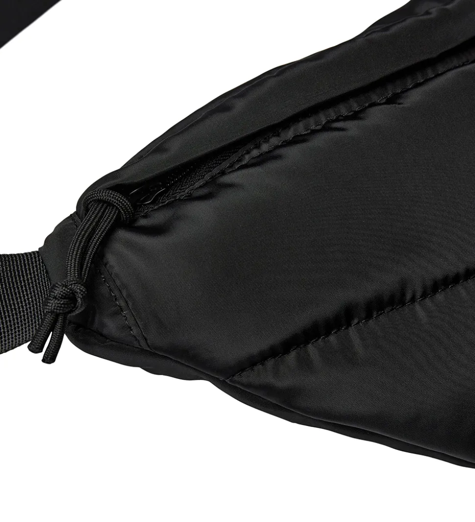 Yndig Sofie Schnoor bæltetaske i sort med vandrette syninger og et sort logo fortil. Bæltetasken er i et glatvævet, vatteret materiale.