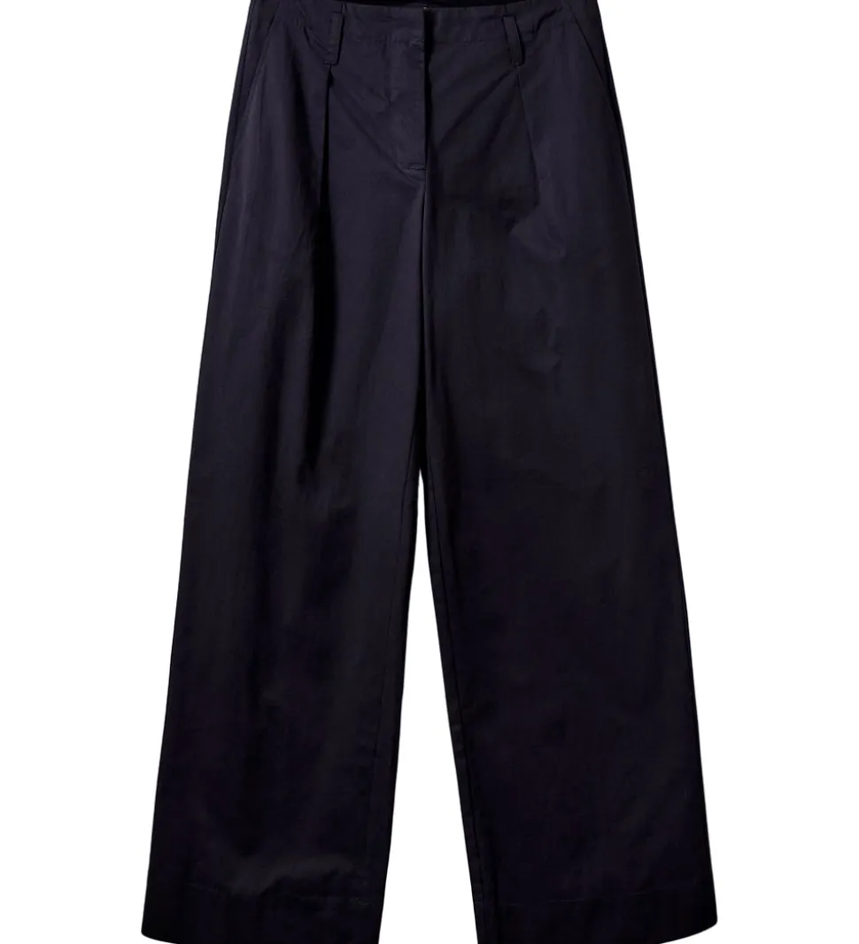 Sofie Schnoor bukserne er designet med brede ben, der giver et stilfuldt udtryk. Taljen er udstyret med bæltestropper for en alsidig pasform. Bukserne lukkes foran med en hægte og lynlås. Lige kanter ved buksebenene afslutter looket.