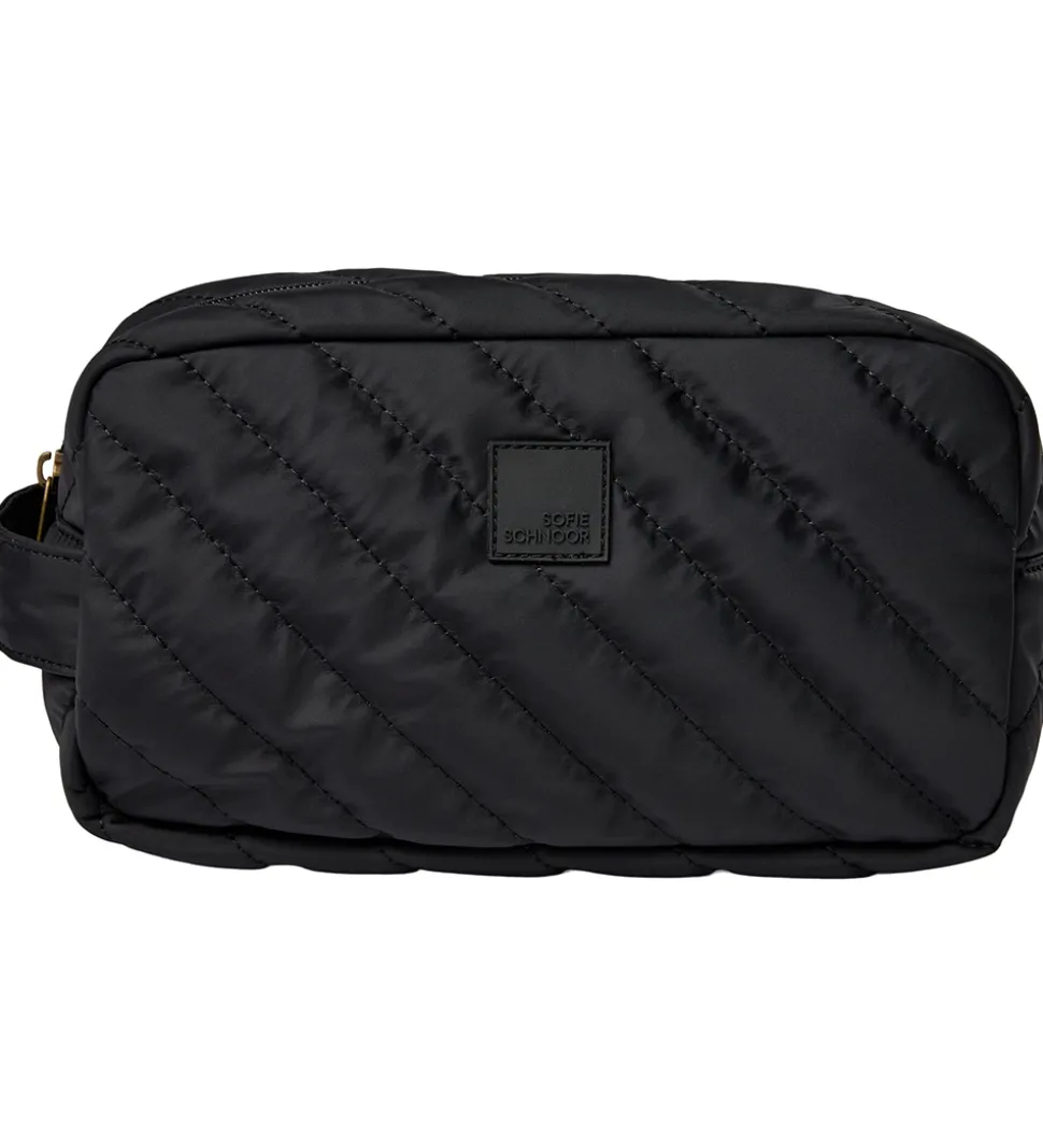 Flot Petit by Sofie Schnoor toilettaske i ensfarvet sort med en fin, quiltet struktur og et diskret gummilogo.