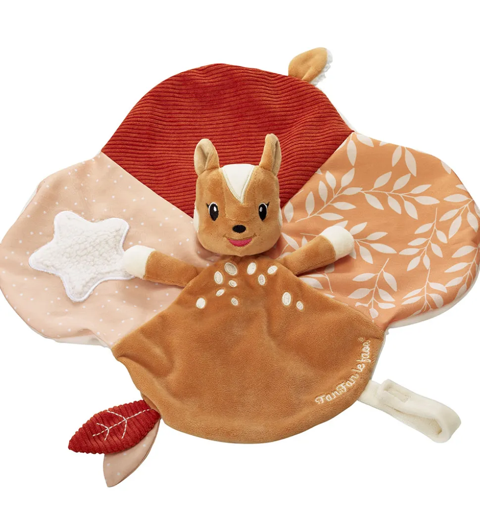 Charmerende Sophie la Girafe nusseklud i brune og rosa nuancer med forskellige prints. Nussekluden har et sødt motiv af Sophie la Girafe samt forskellige og farverige teksturer der er med til at stimulere barnets sanser. Derudover er den god til at skabe tryghed og virke beroligende.