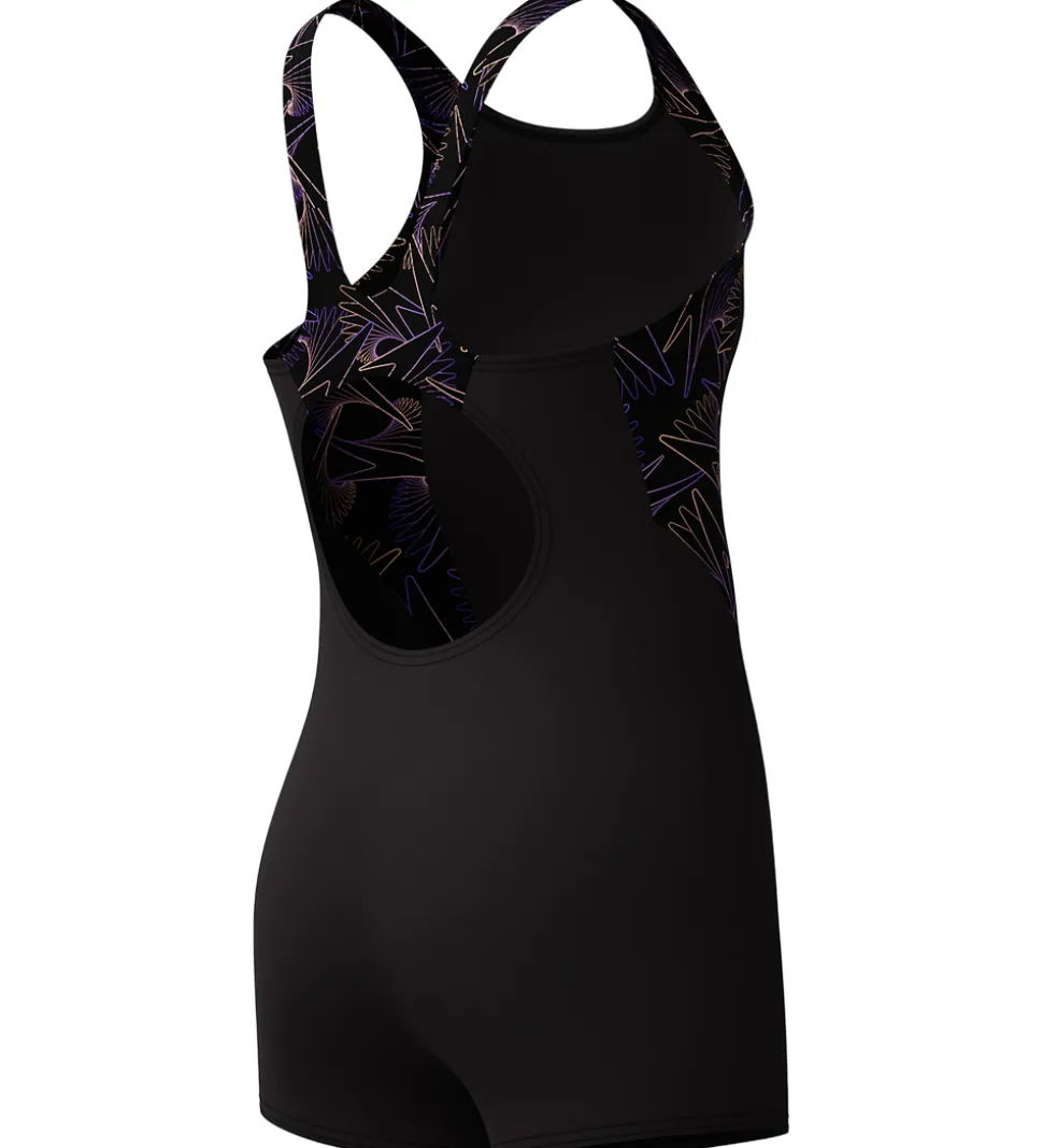 Speedo badedragten har korte ben og elastiske skulderstropper, som mødes i en bryderryg bagtil. Badedragten har også en rund udskæring på ryggen, som skaber en stor bevægelsesfrihed.