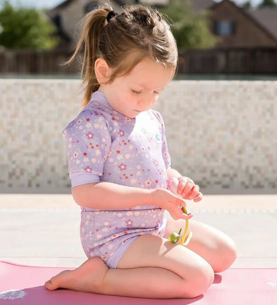 Smart Splash About våddragt i lilla med flot print af blomster i skønne farver.