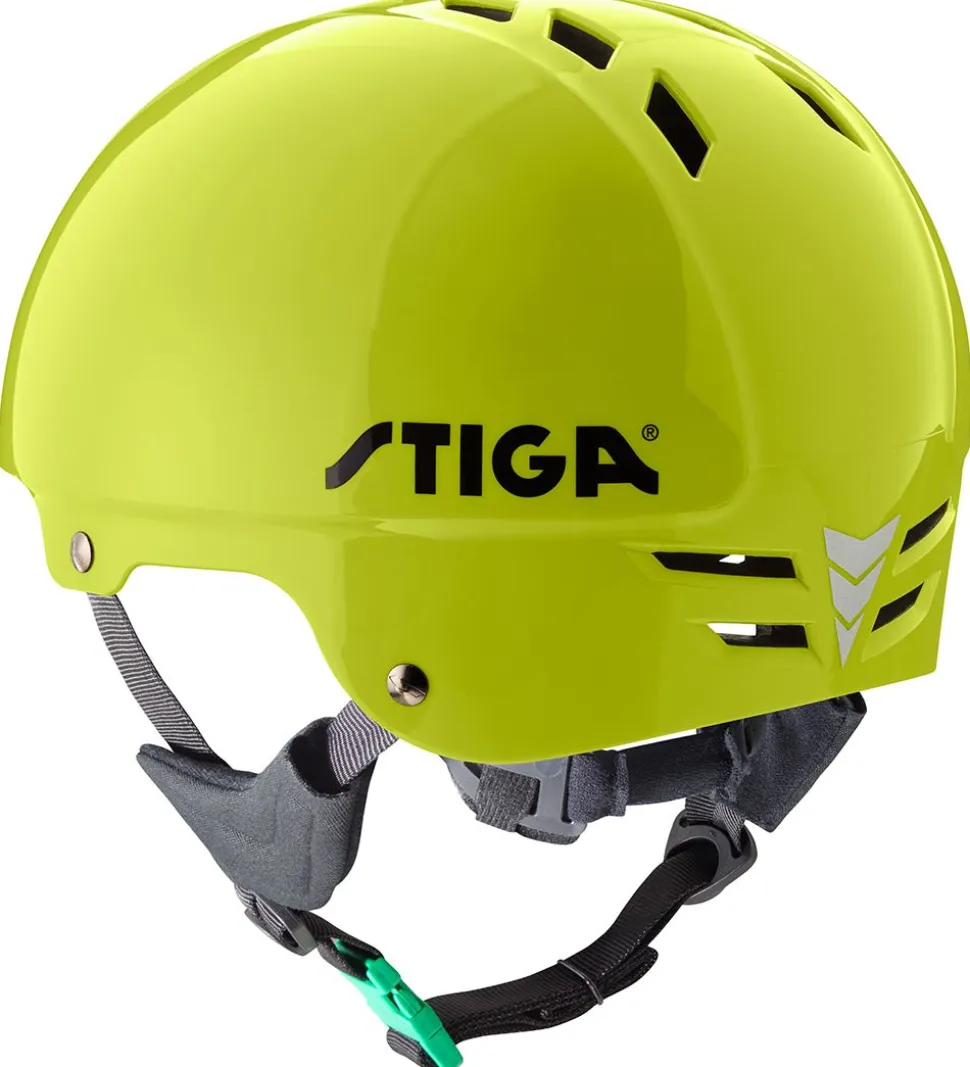 Sej Stiga cykelhjelm i limegrøn med et Stiga logo i sort på venstre side.