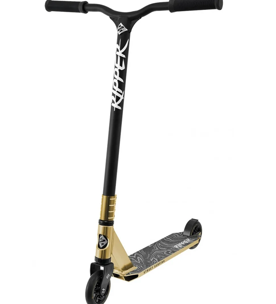 Streetsurfing løbehjulet i modellen Ripper er et godt begynder-løbehjul til triks og hop. Fodpladen har en ruflet overflade, så barnet står sikkert på den, og håndtagene har og så et godt greb. Løbehjulet har en god stødabsorbering, og der er bremse på det bageste hjul. Hjulene er i hård gummi.