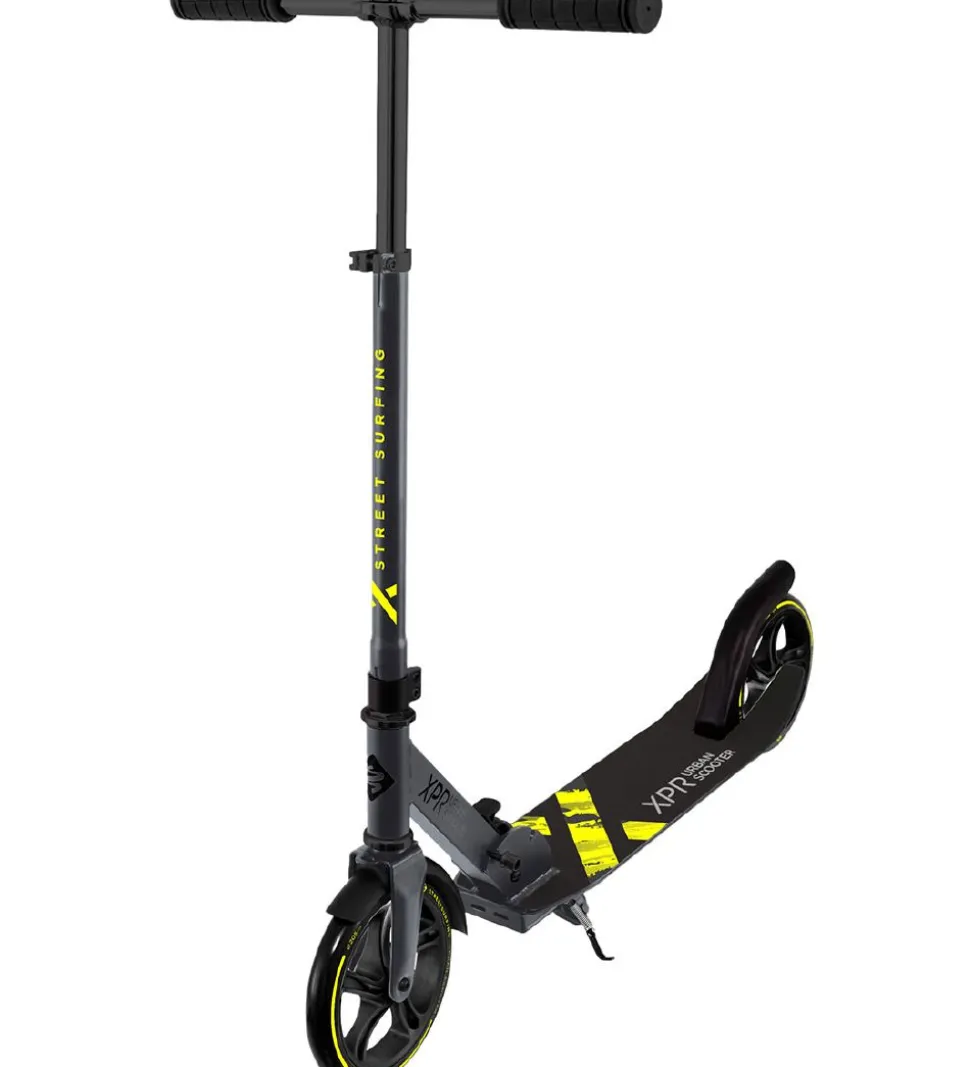 Streetsurfing løbehjulet kan justeres i højden, da der er forskellige indstillinger. Løbehjulet har en skridsikker fodplade samt håndtag med skum for et solidt greb. Bagtil er der en praktisk bremse, og i bunden er der en støttefod. Løbehjulet kan foldes sammen, så det er let at opbevare eller have med sig.