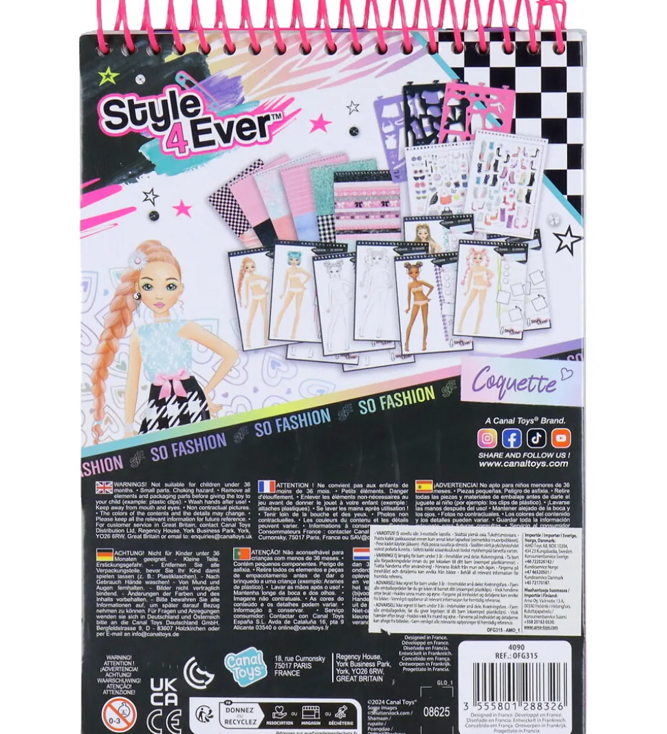 Fantastisk Style 4 Ever kreasæt bestående af et mini skitsebogssæt, hvor du selv kan designe tøj med forskellige skabeloner og motiver. Style 4 Ever kreasættet er perfekt til kreative stunder med stilfulde designmuligheder.