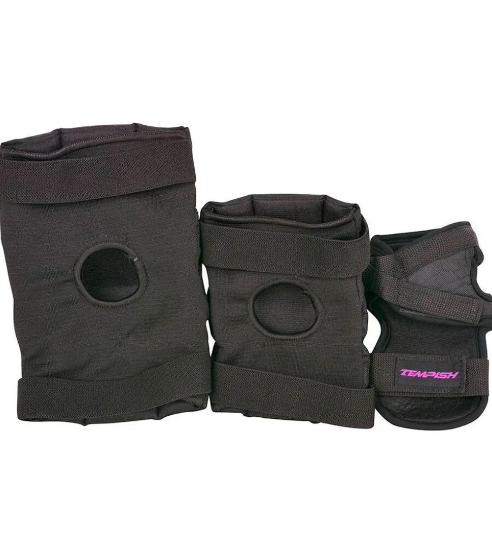 Tempish beskyttelsessættet beskytter de udsatte områder på barnet, når de er ude at stå på rulleskøjter, løbehjul, skateboard eller køre på løbecykel. Beskyttelsessættet spændes fast med gode velcrostropper, så de bliver siddende hvor de skal. Beskyttelsessættet forhindrer ikke nødvendigvis skader, men det afdæmper de slag, som barnets krop kan få, hvis det falder.