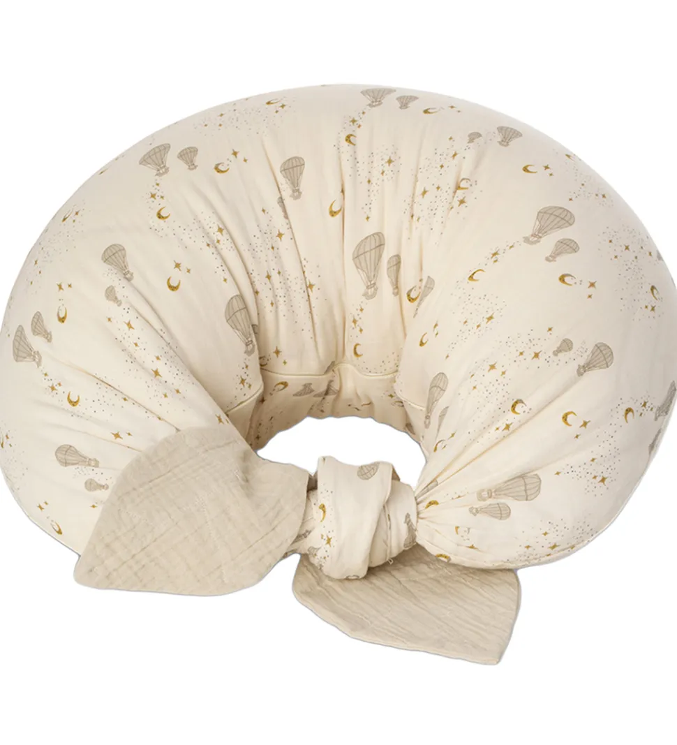 Skøn That’s Mine ammepude i cremehvid med et alloverprint af luftballoner, måner og stjerner i beige og gule farver.