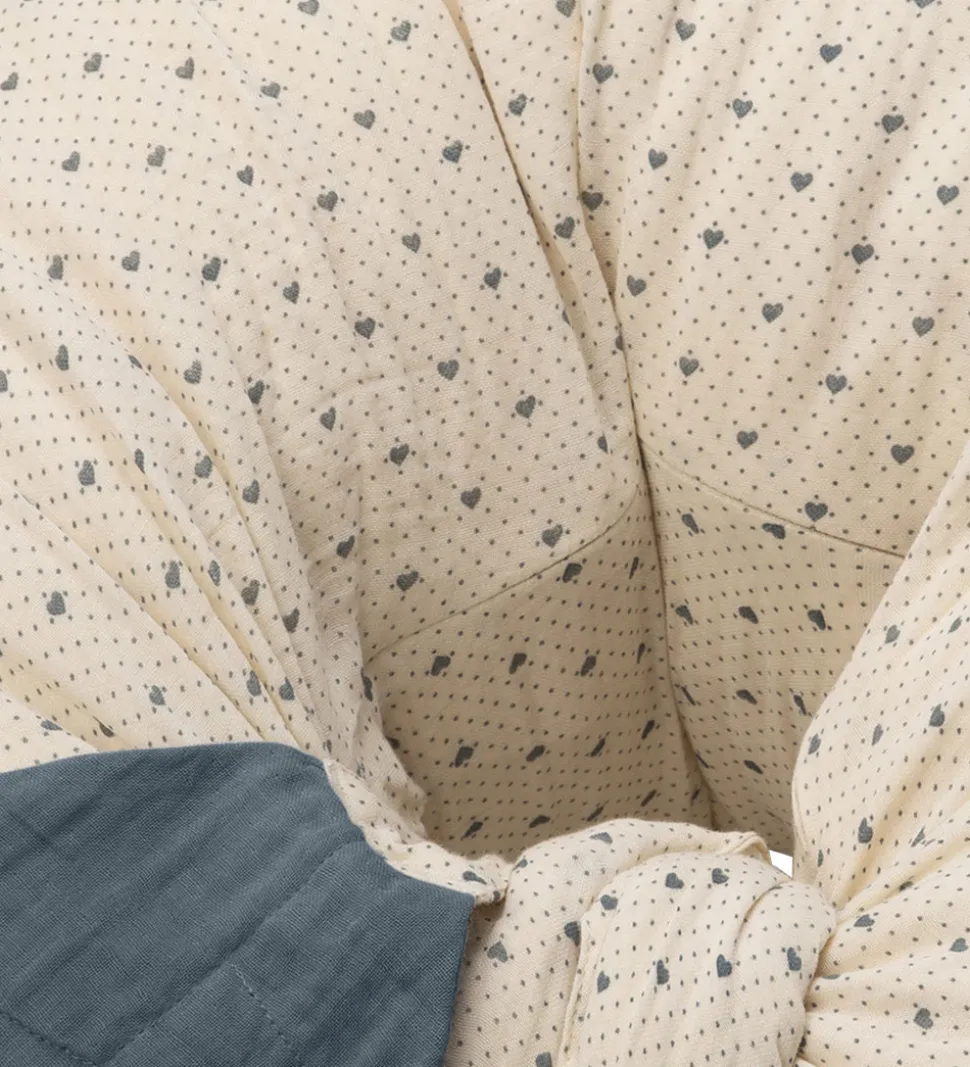 Pæn That’s Mine ammepude i cremehvid med små navyblå prikker og hjerter.