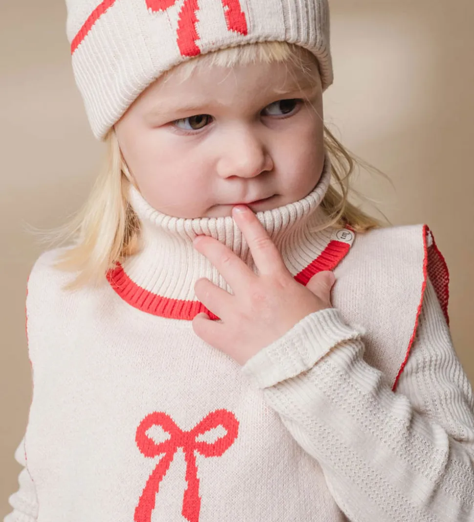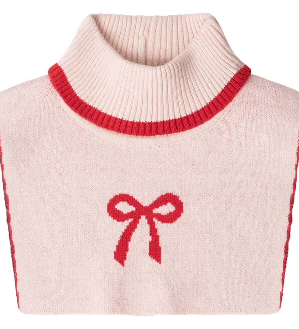 Elegant halsedisse fra Thats Mine i en blød, lyserød nuance med en rød sløjfe på fronten. Thats Mine har designet halsedissen med en høj ribstrikket krave med en bred rød kant, der giver et klassisk udtryk.