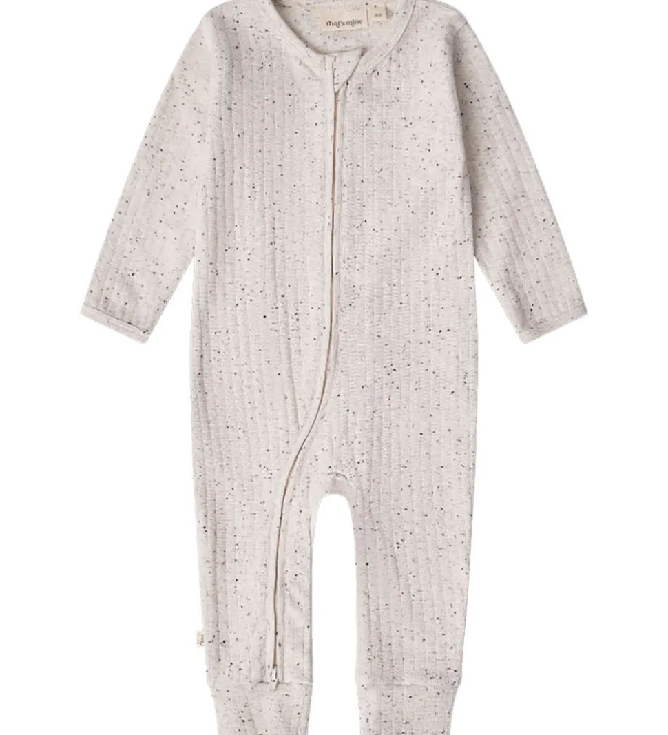 Elegant heldragt fra Thats Mine i meleret, lysebeige nuance med diskrete, sorte prikker, der skaber et enkelt og stilrent udtryk.