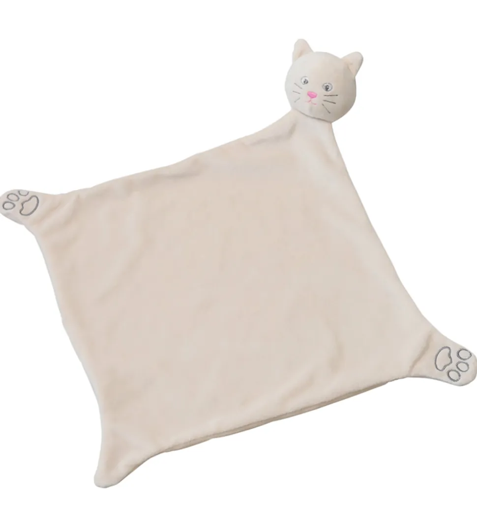 Fin That’s Mine nusseklud i cremehvidt velour med et katteansigt i det ene hjørne, mens de andre hjørner udgør poter og hale.