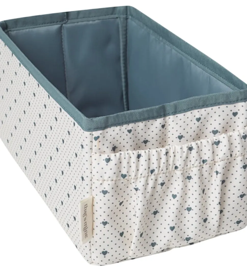 Smart Thats Mine pusleopbevaring i hvid med blå prikker og hjerter.