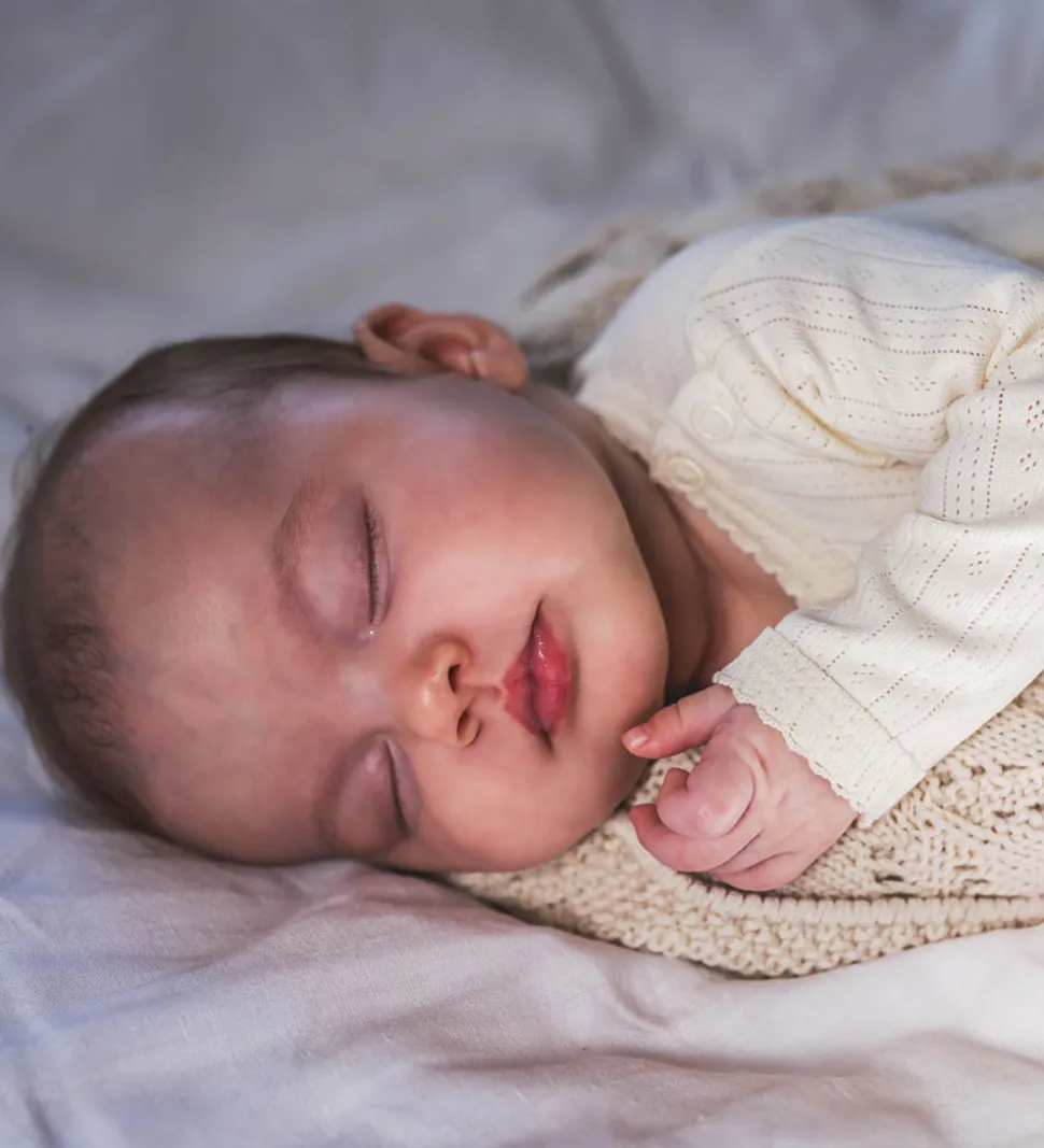 Smukt That’s Mine tæppe i beige strik med et flot hulmønster.