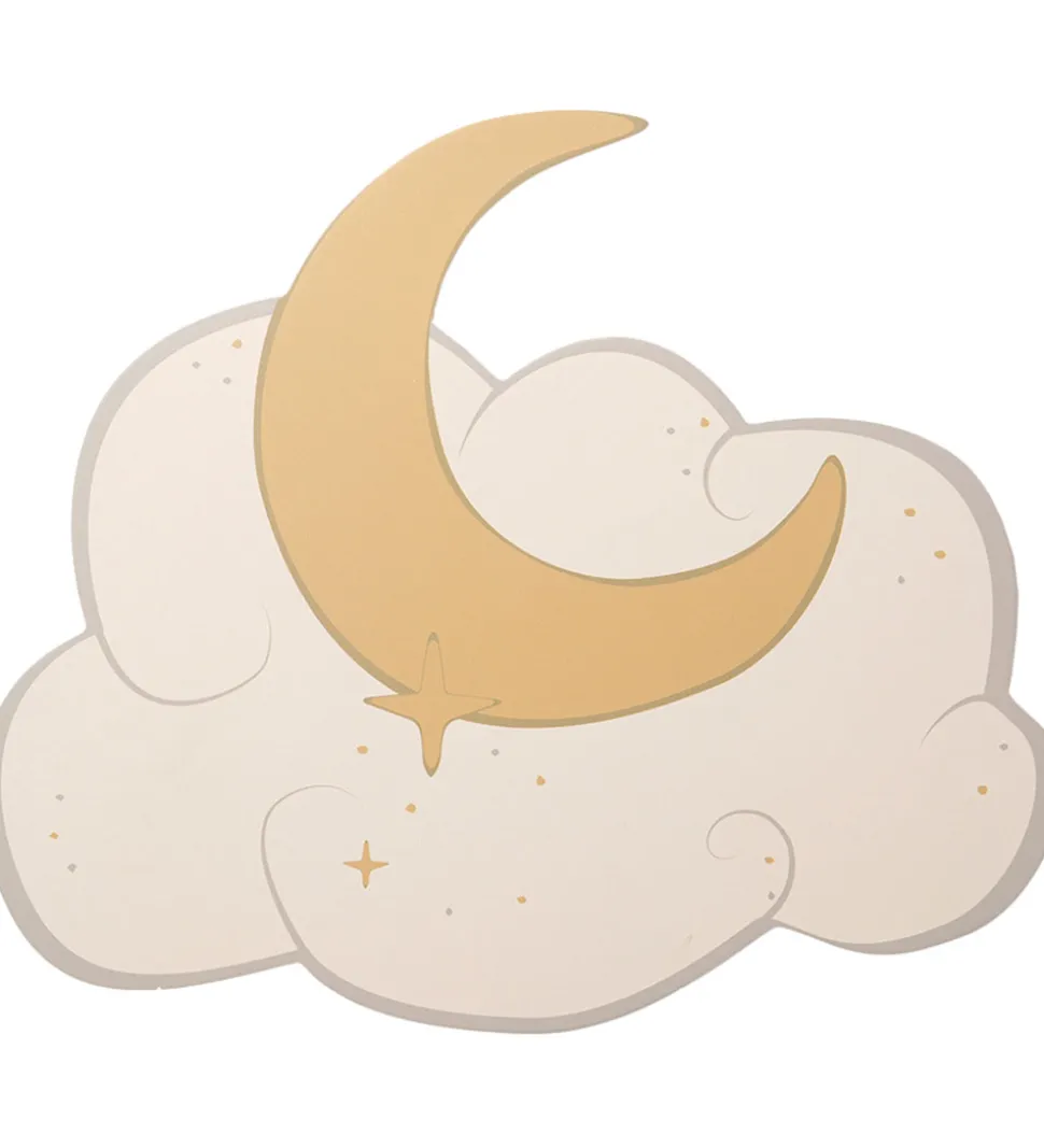 Fin That’s Mine væglampe i malet træ med form som en hvid sky samt en gul måne og stjerner.
