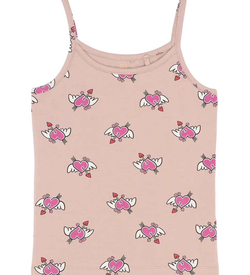 Charmerende toppe fra The New solgt i en 2-pak, en i ensfarvet, støvet lilla og en i støvet rosa med print af lyserøde hjerter med vinger og pile, der tilføjer et sjovt twist til garderoben. Perfekt til enhver lejlighed.