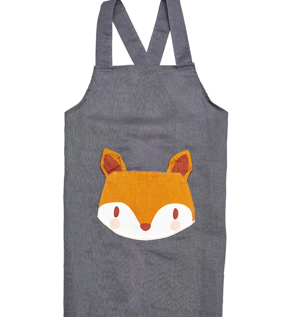 Flot ThreadBear forklæde i mørkeblå hør med en ræv fortil, der også er en praktisk lomme.
