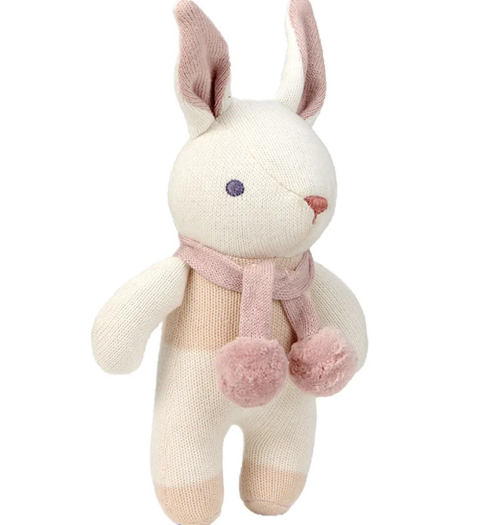 Skøn ThreadBear rangle med form som en hvid kanin med et rosa pompon-halstørklæde og broderede detaljer.