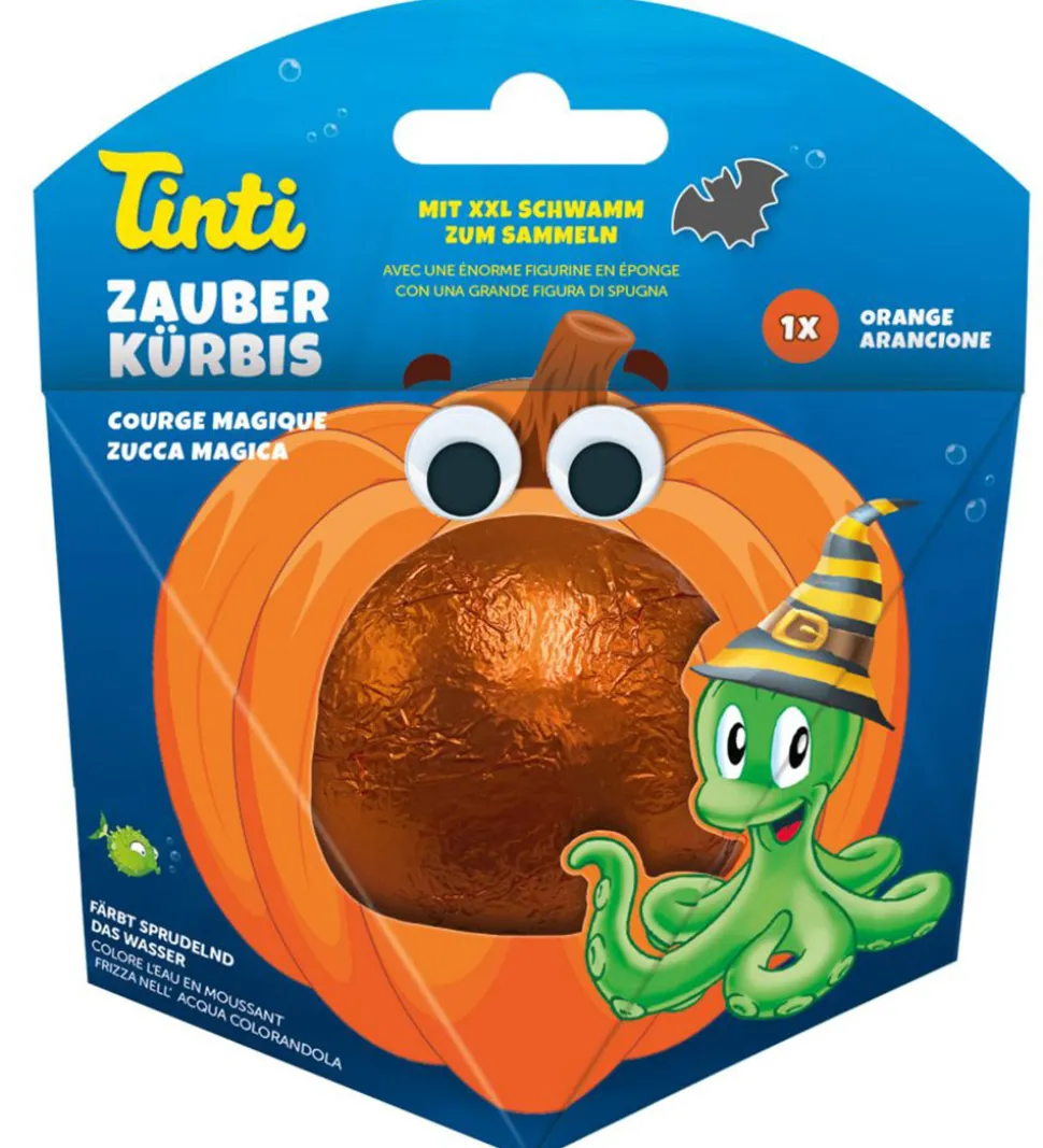Sjov Tinti tryllekugle i orange. Denne bath bomb kan farve op til 70 liter vand.