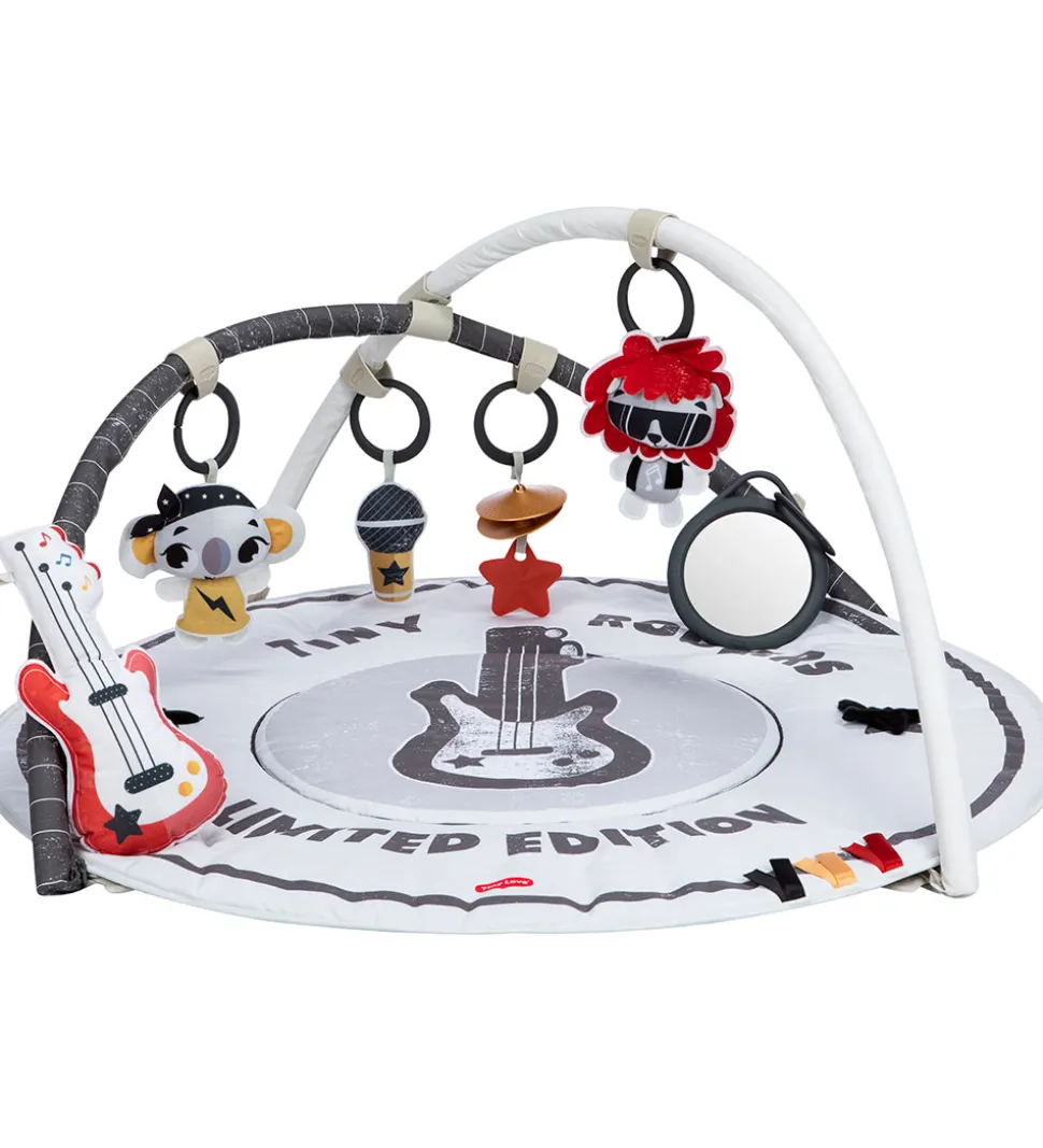 Sjovt Tiny Love aktivitetstæppe i sort og hvid med rock tema.