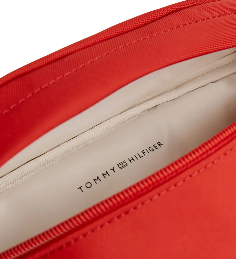 Fin Tommy Hilfiger bæltetaske i en stilfuld rød farve et med lille Tommy Hilfiger-logo på fronten.