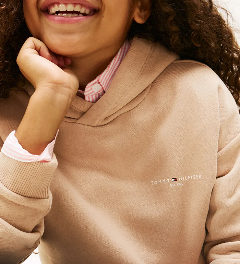 Lækker hættetrøje fra Tommy Hilfiger i beigefarvet sweat. Hættetrøjen har et enkelt logoprint på brystet samt en praktisk kængurulomme foran. Hættetrøjen er designet med ribkanter samt en rummelig hætte, der giver et afslappet udtryk. Hættetrøjen har blødt, børstet bomuld på indersiden.
