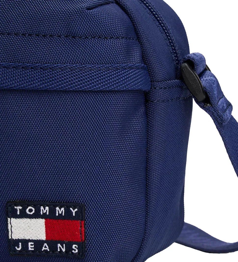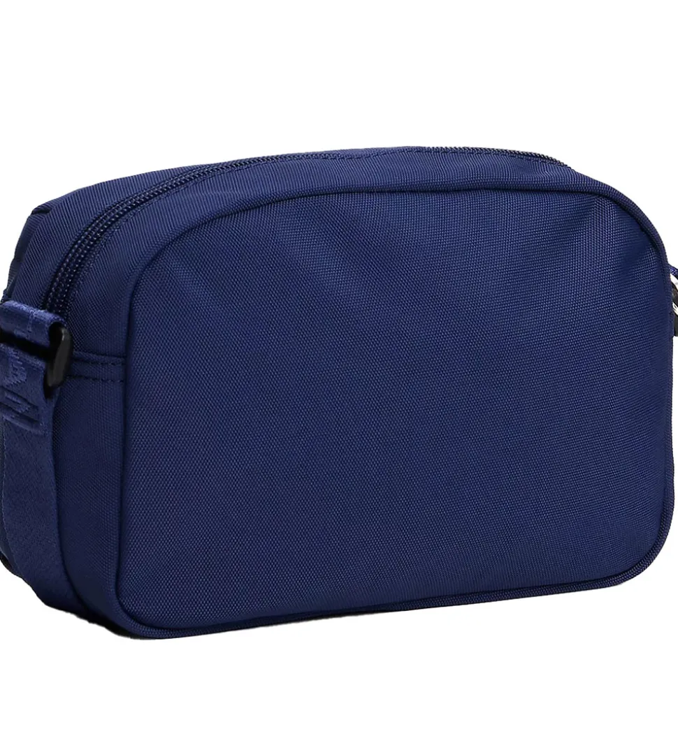 Smart Tommy Hilfiger skuldertaske i kongeblå med et logo på fronten. Skuldertasken består af to rum, som begge åbnes med lynlås. Indvendigt i det største rum, er der en åben lomme bagtil. Skuldertasken har en bred, justerbar skulderrem med blå logoer.