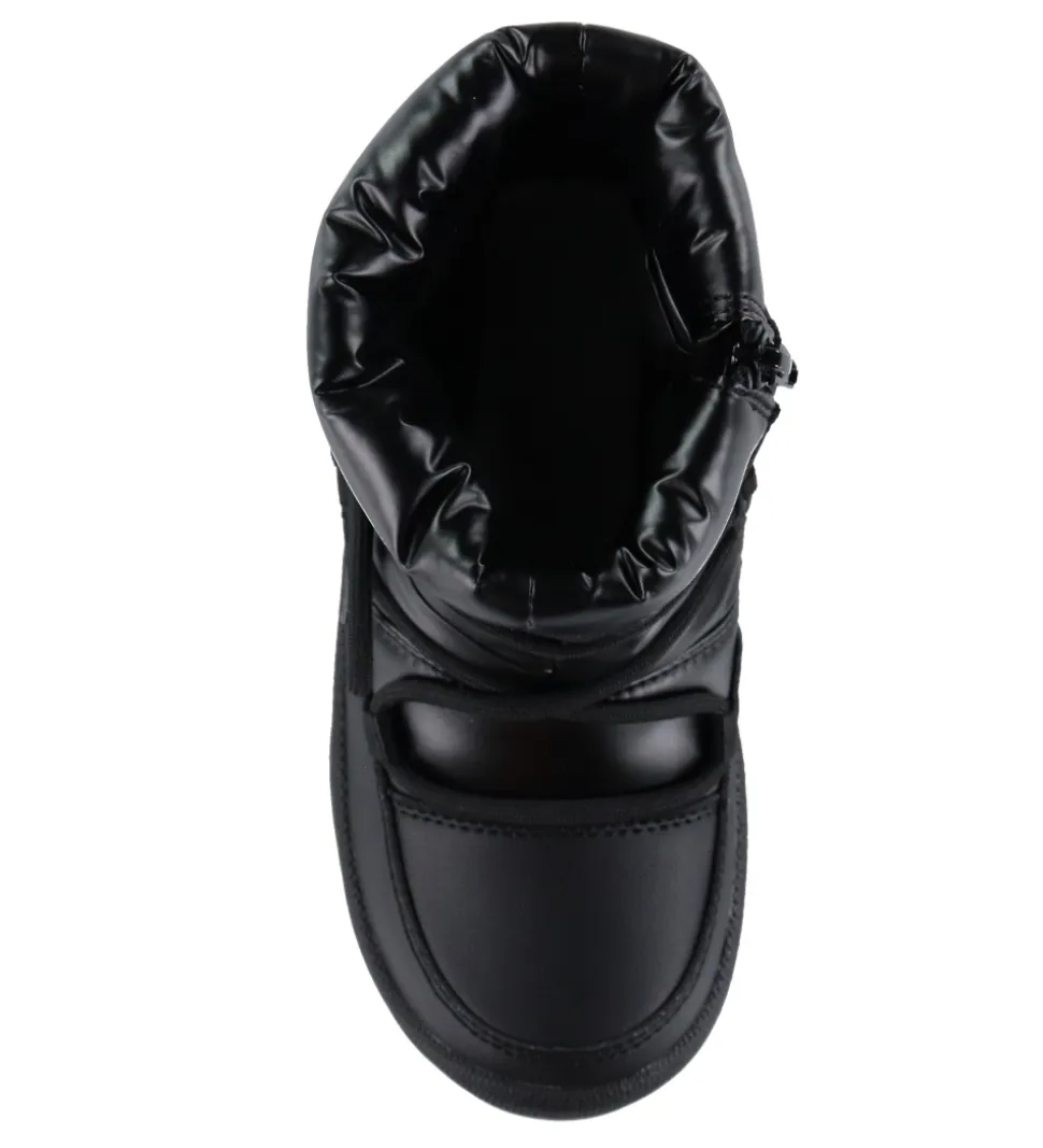 Stilfulde Tommy Hilfiger vinterstøvler i sort imiteret læder og tekstil. Vinterstøvlerne har en blank overflade og logo på ydersiden samt på hælen.