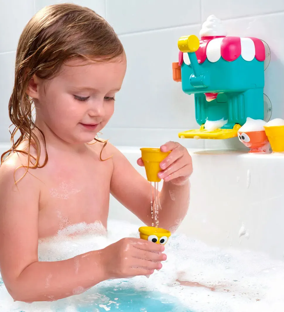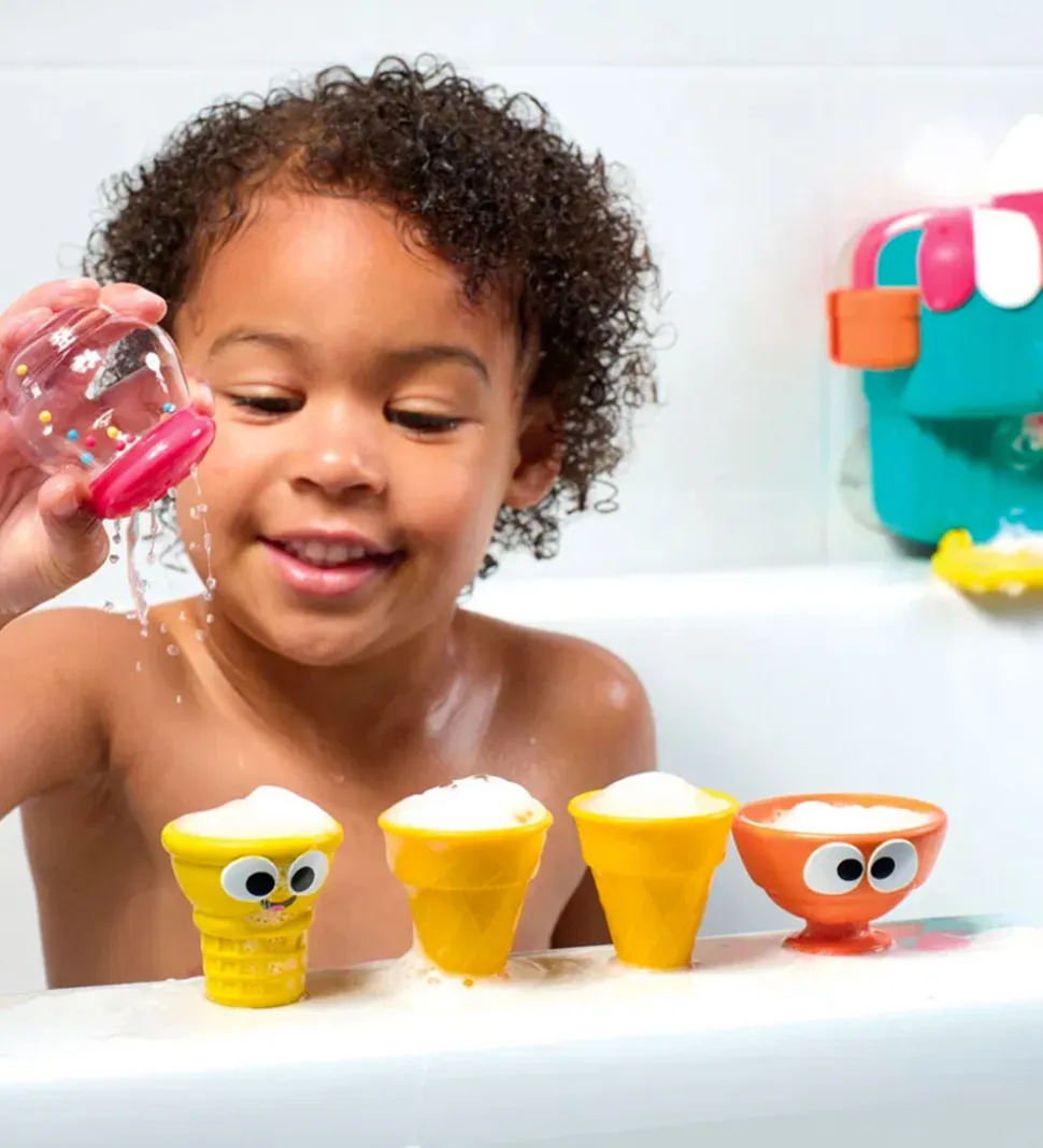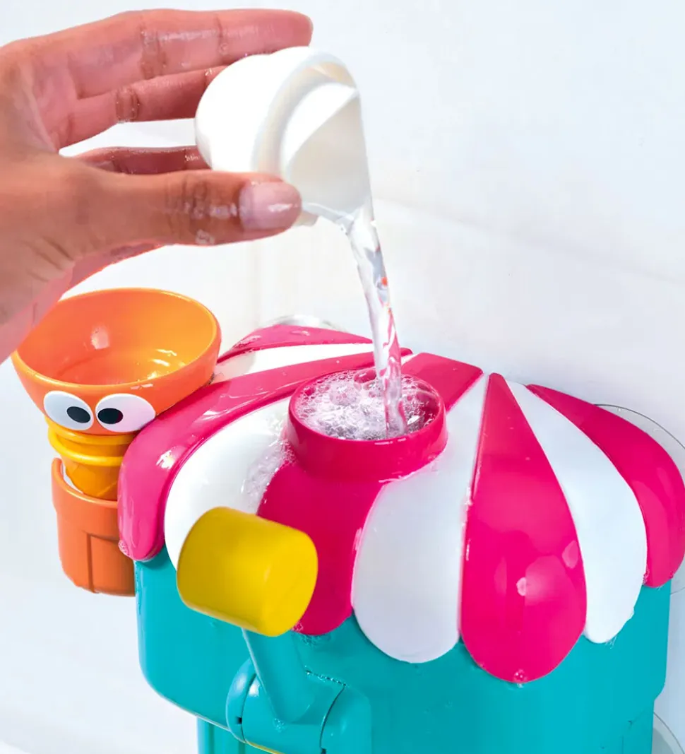 Toomies sjove legetøj lader børn skabe deres egne “is” kreationer med den sjove bobbelmaskine, hvilket skaber en interessant og interaktiv oplevelse, hvor fantasien kan blomstre. Ved at putte sæbevand i toppen og trække i håndtaget kommer en masse bobler ud, hvorefter man enten kan komme det i skålen eller vaflerne. Kun fantasien sætter grænser!