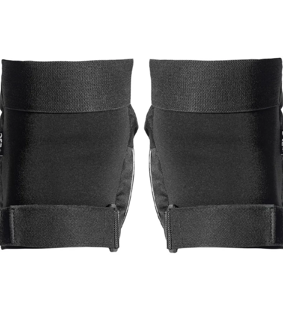 Fine TSG knæbeskyttere i sort med logoer i hvid fortil.