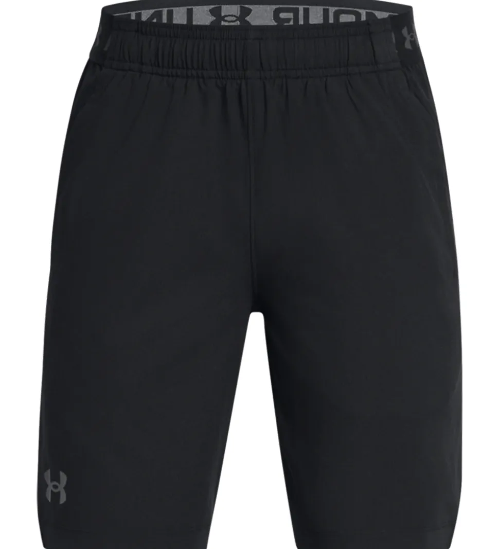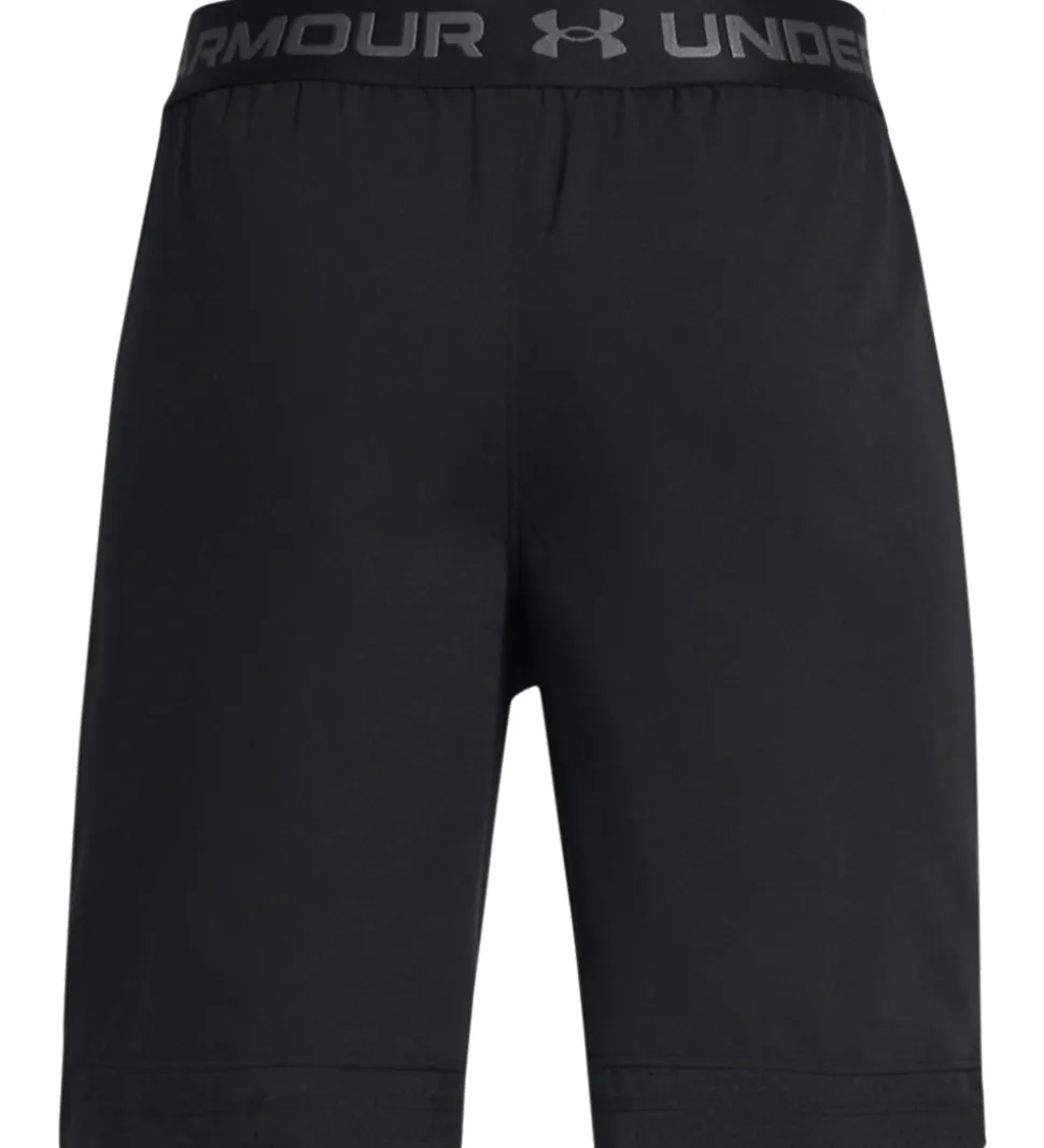 Smarte Under Armour shorts i sort, og bagpå i livet står der “Under Armour” i grå.