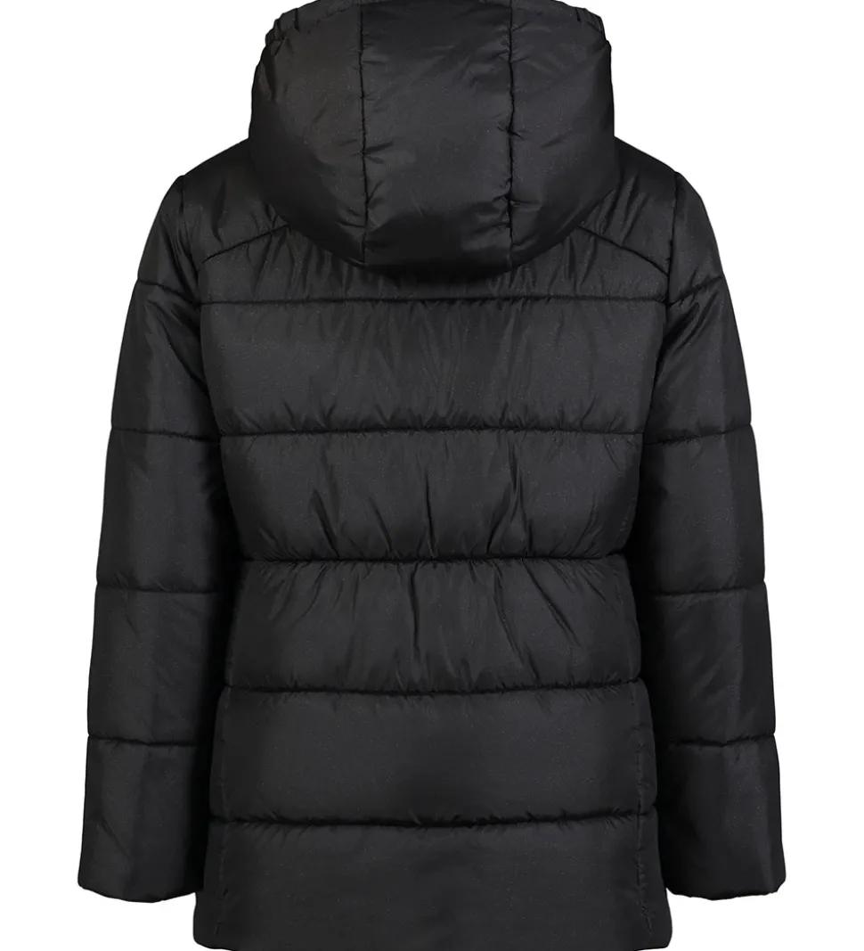 Flot Under Armour dynejakke i sort med glimmer. Dynejakken har et logo i bronze på venstre bryst og en bronze lynlås.