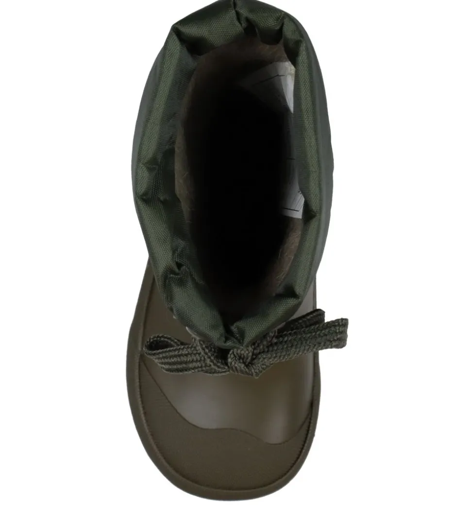 Smarte Viking termostøvler i olivengrøn, med en lille refleks på hælen samt Vikings logo i sort på ydersiden og “Viking” i sort fortil på skaftet.