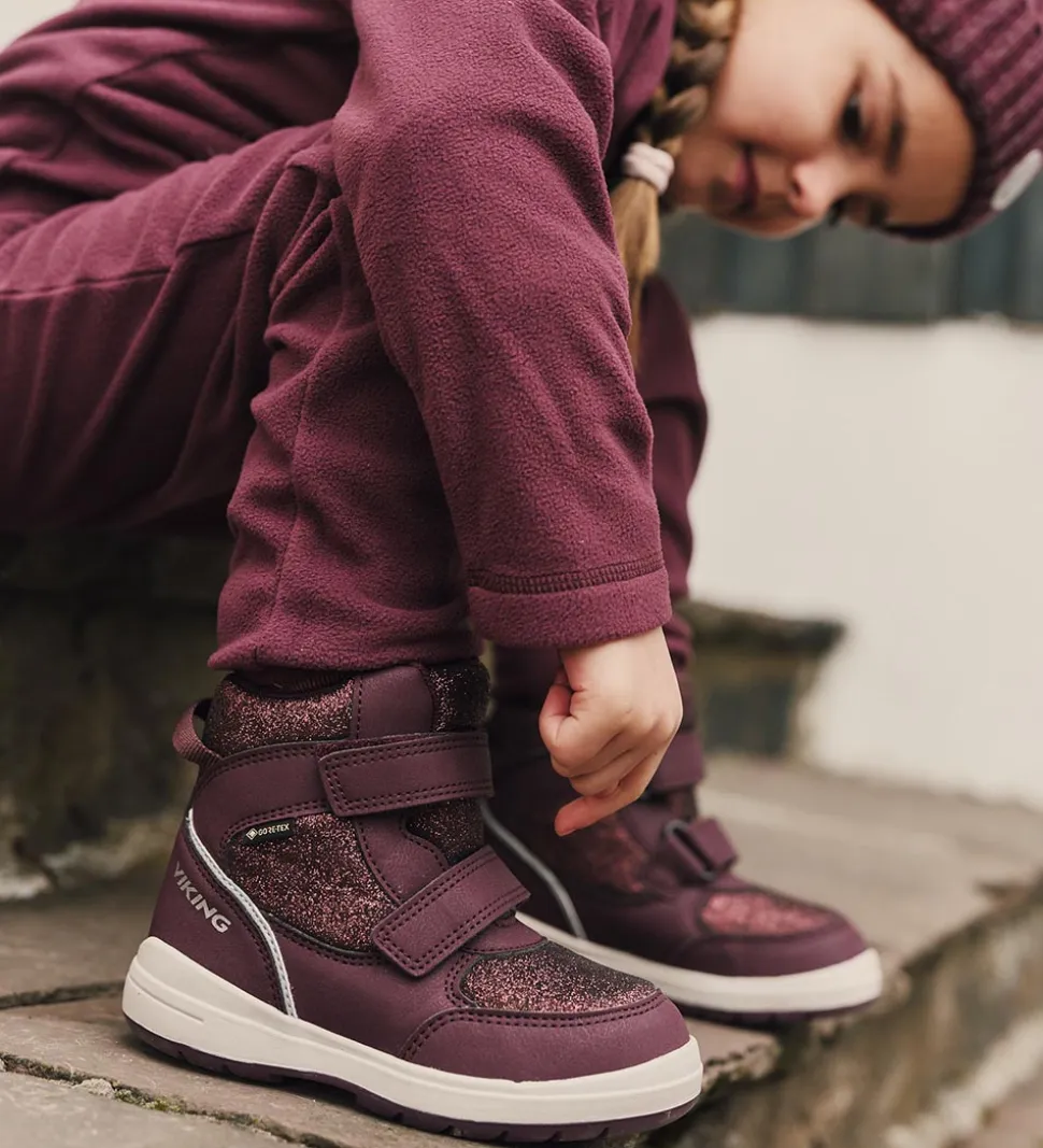 Fine Viking vinterstøvler i ensfarvet lilla med glimmerdetaljer.