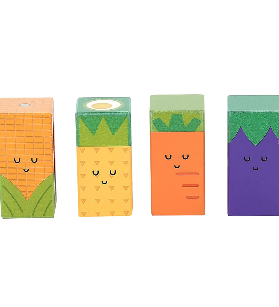 - Fire rektangulære klodser (majs, gulerod, aubergine, ananas)
