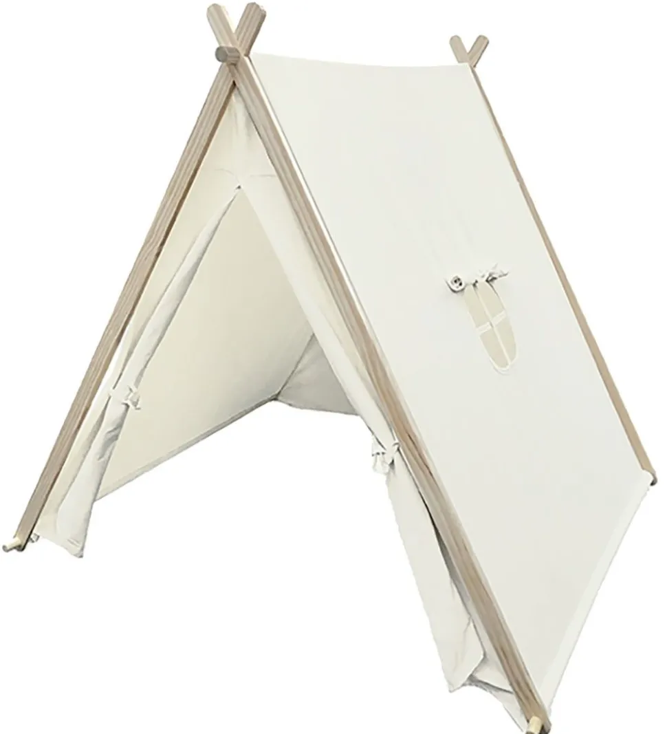 Flot Vilac legetelt i creme med et vindue på den ene side i hvid og bjælker i naturlig træ.