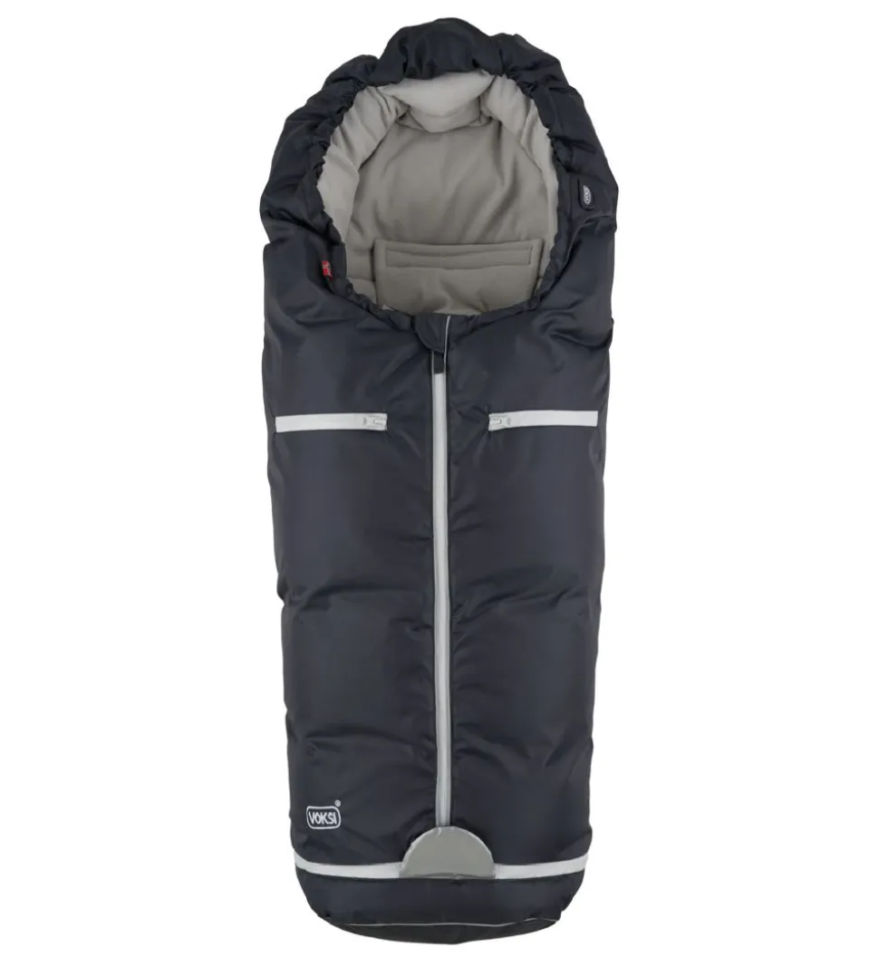 Voksi køreposen åbnes fortil med en lynlås, der kan åbnes både fra oven og fra neden. Den kan også åbnes i bunden, og hele bunden kan lynes af, og bundstykket kan udskiftes med en længere forlængerdel, så posen kan vokse med barnet.