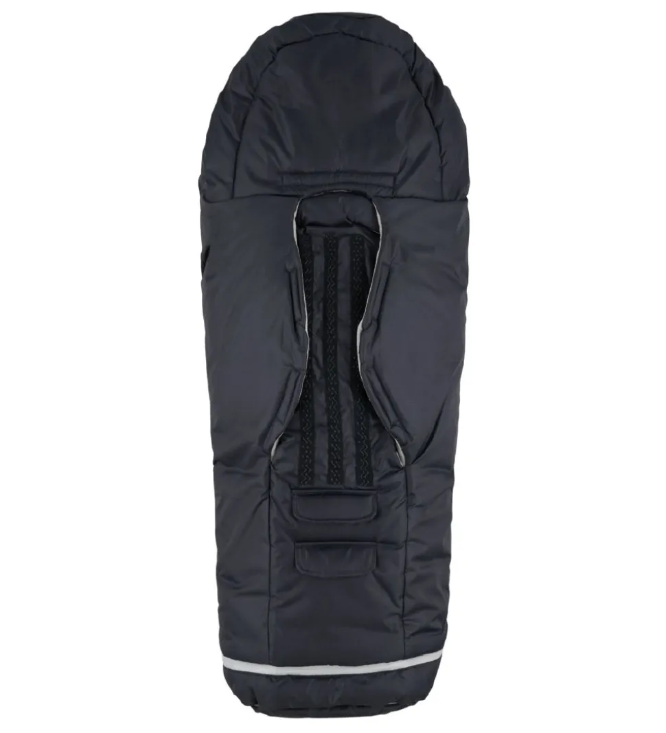 I toppen kan køreposen strammes ind med en elastiksnøre, der er gemt under en flap med velcro. Fortil er der to paktiske lommer, som lukkes med en lynlås. I ryggen er der åbninger til en barnevognssele, og hullerne er dækket af uldforede flapper, der beskytter mod kulde. På ryggen er der desuden striber af silikone, som sikrer, at køreposen ikke skirder i klapvognen.