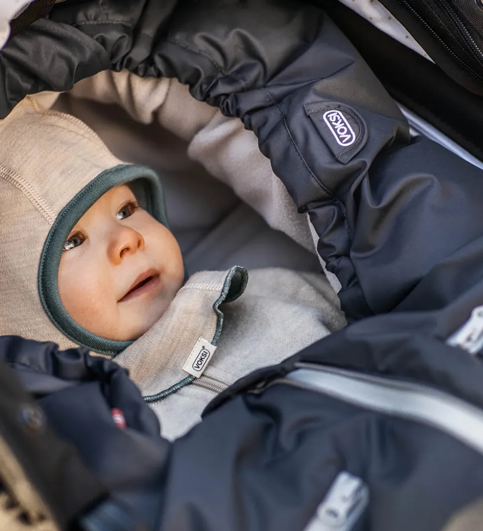 Skøn Voksi kørepose i modellen Active i ensfarvet navy med grå detaljer.