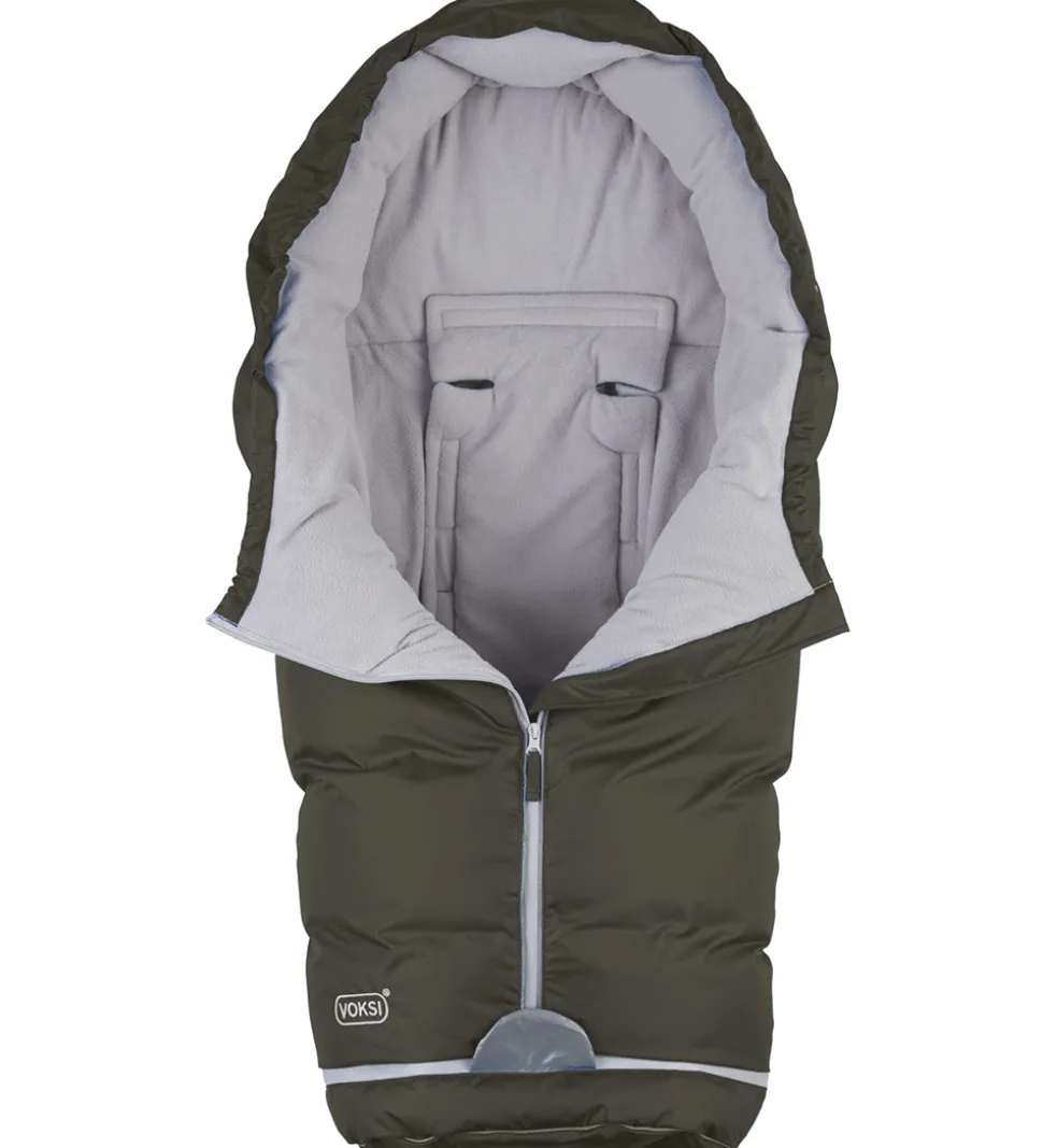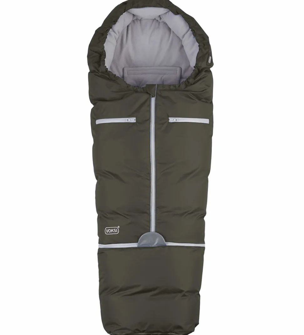 Voksi køreposen åbnes fortil med en lynlås med indvendig vindstolpe og hagebeskytter, og den kan åbnes både fra oven og fra neden. Køreposen kan også åbnes i bunden, og hele bunden kan lynes helt af, og bundstykket kan udskiftes med en længere forlængerdel, så posen kan vokse med barnet.