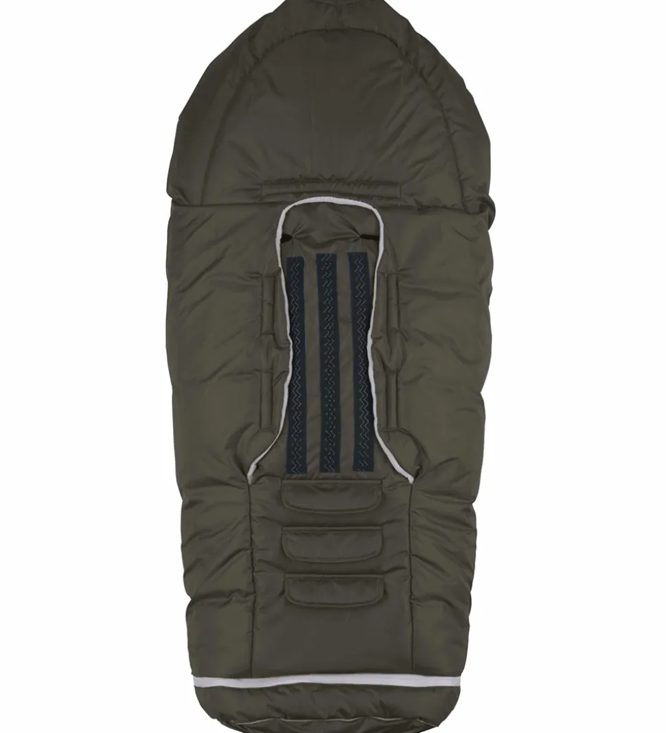 Posen er foret med blødt, lysegråt fleece, og i den øverste del er den vatteret med dun og fjer, mens der i ryggen er et lækkert temperaturregulerende uldfor, som leder fugt væk fra barnets krop, samtidig med at det skaber en stabil og behaglig temperatur. Ned langs lynlåsen fortil og rundt i bunden af køreposen er der praktiske refleksstriber.
