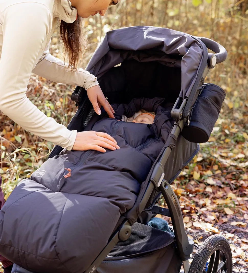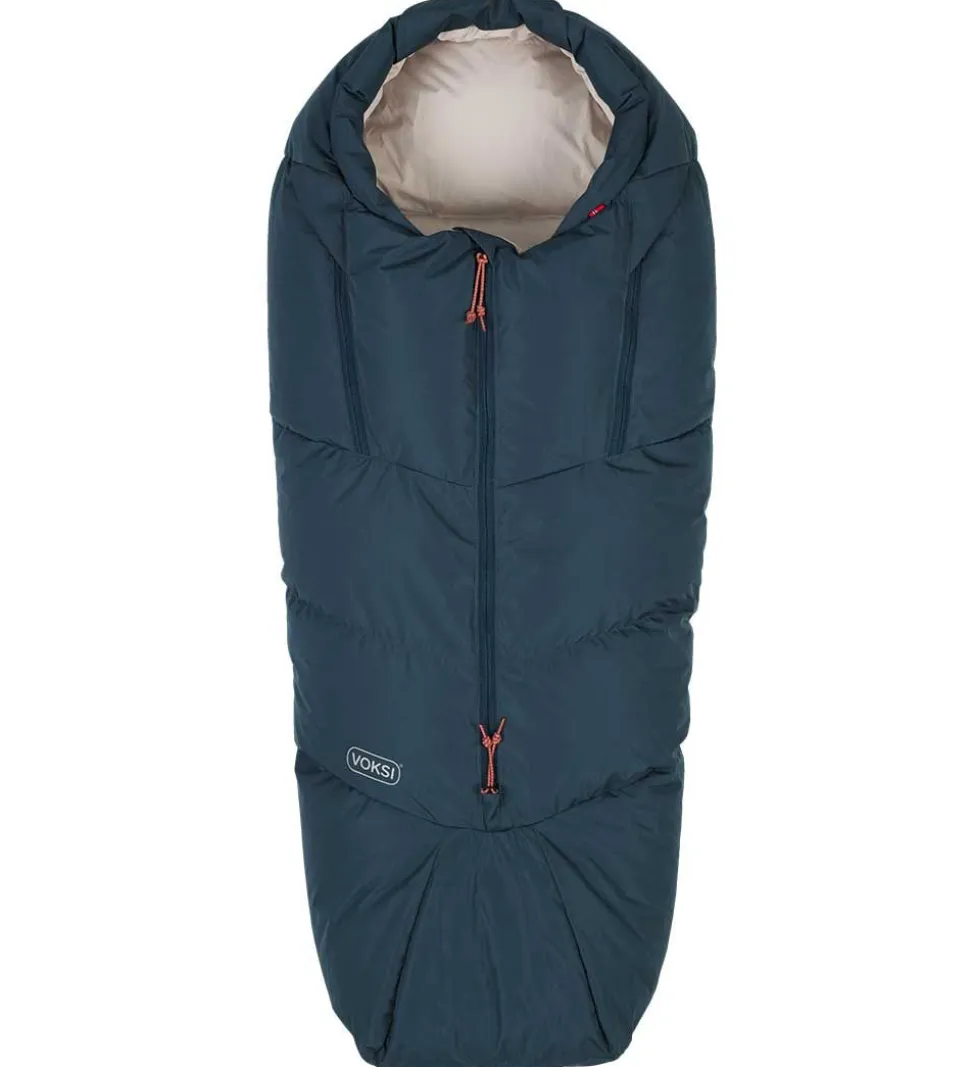 Voksiposen er i en lækker, glatvævet kvalitet, og den er vatteret med lune dun og fjer. Der medfølger en kompressionspose så køreposen kan gøres mindre, noget som er ideelt ved rejser. Kompressionsposen kan også bruges som opbevaringspose.