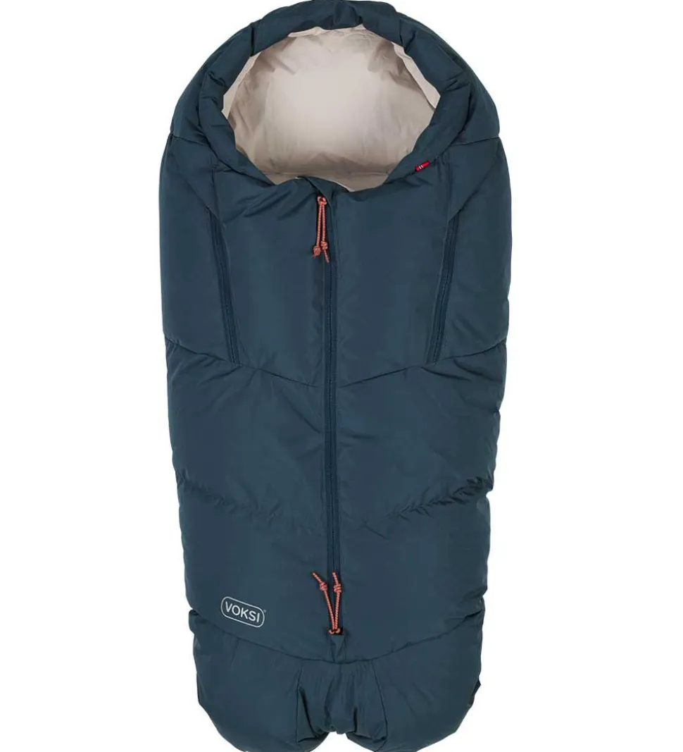 Voksiposen er i en lækker, glatvævet kvalitet, og den er vatteret med lune dun og fjer. Der medfølger en kompressionspose så køreposen kan gøres mindre, noget som er ideelt ved rejser. Kompressionsposen kan også bruges som opbevaringspose.