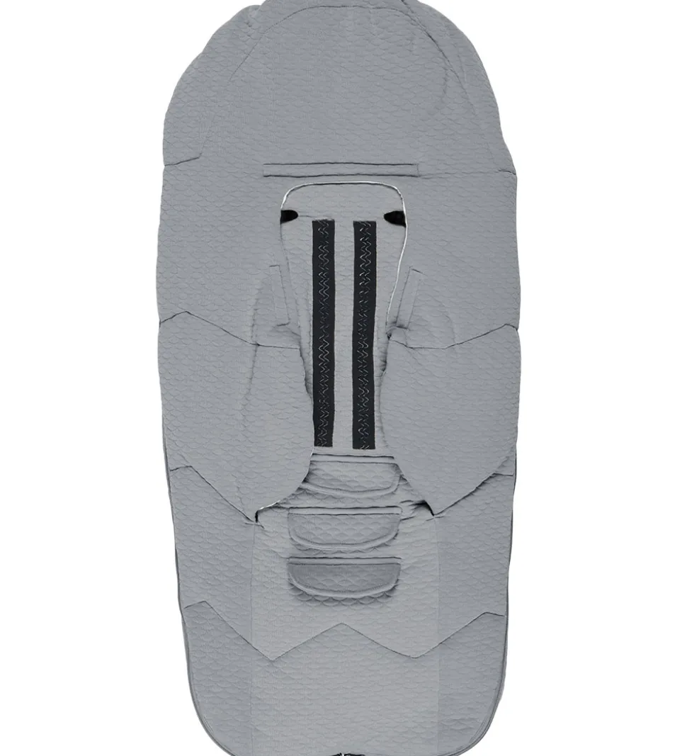 Lækker Voksi kørepose i modellen Breeze Light i en flot grå med en fin struktur i stoffet. Køreposens inderstof er i hvid, med et sødt alloverprint af små prikker og blade.
