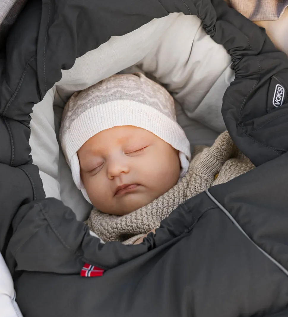 Flot Voksi kørepose i modellen City i grå på ydersiden og et hvidt for.