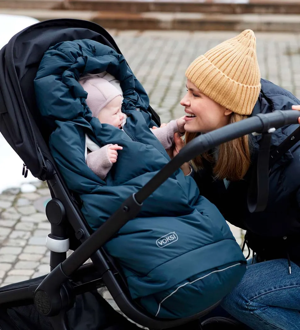 Voksi køreposen åbnes fortil med en lynlås, der kan åbnes både fra oven og fra neden, og der er en ekstra bred udvendig vindstolpe. I bunden kan køreposen udvides med en lynlås, så den kan vokse med barnet.