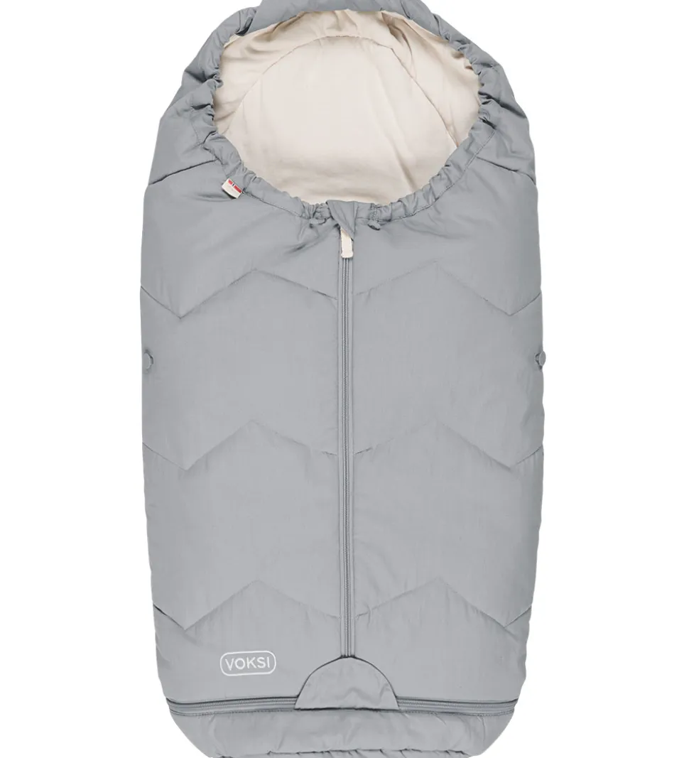 Smart Voksi kørepose i modellen Sky Light i fin grå nuance, mens køreposens inderstof er i råhvid.