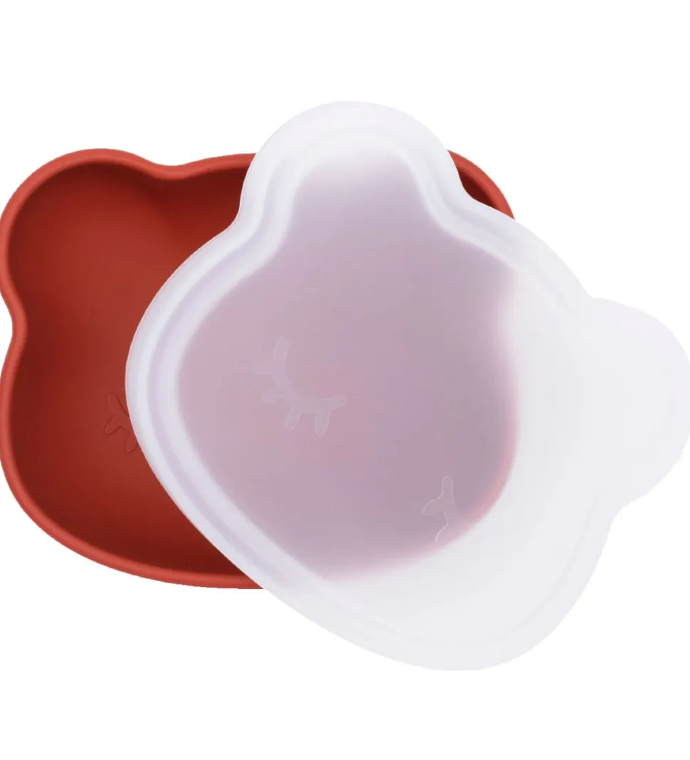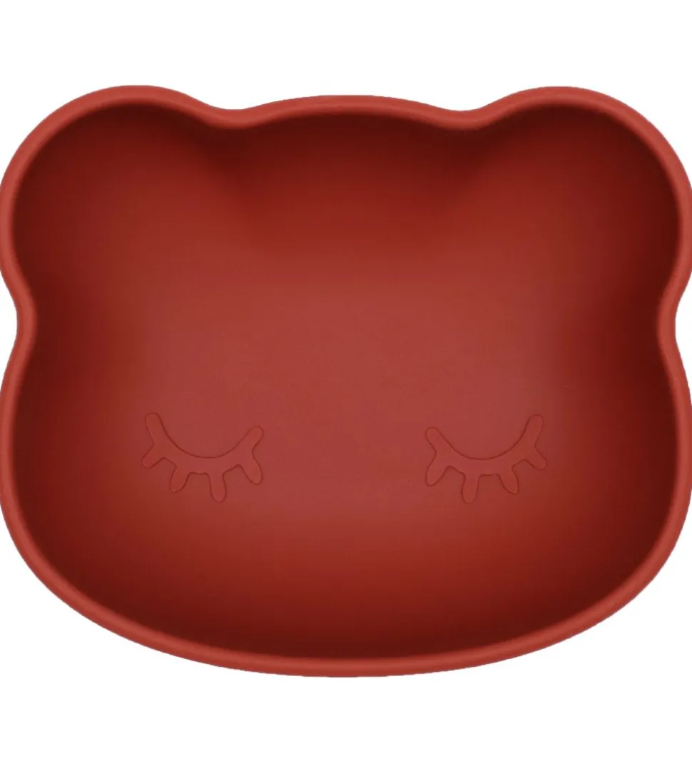 Flot We Might Be Tiny skål formet som en bjørn i rustrød. På låget og i skålen er der flotte øjne.
