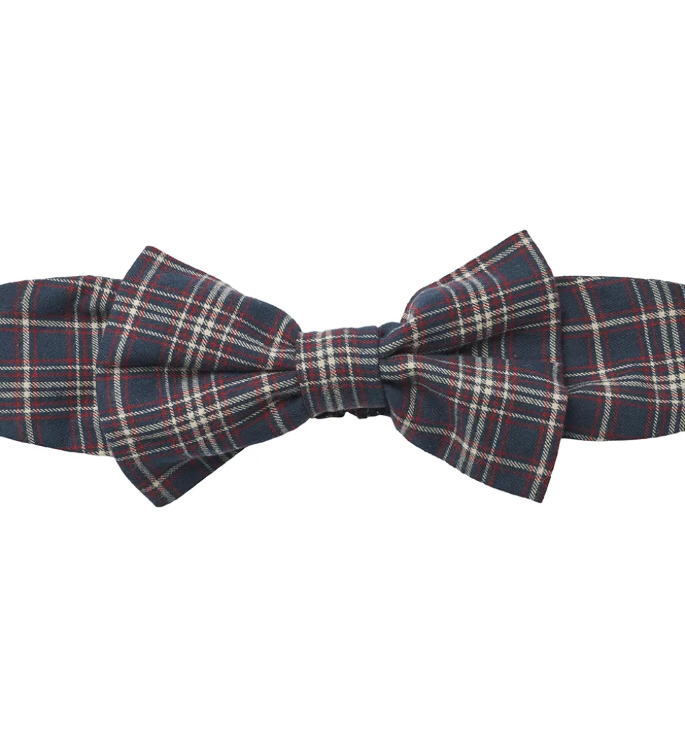 Lækkert Wheat hårbånd i en navy farve med et ternet mønster i rød og hvid i fastvævet stof.